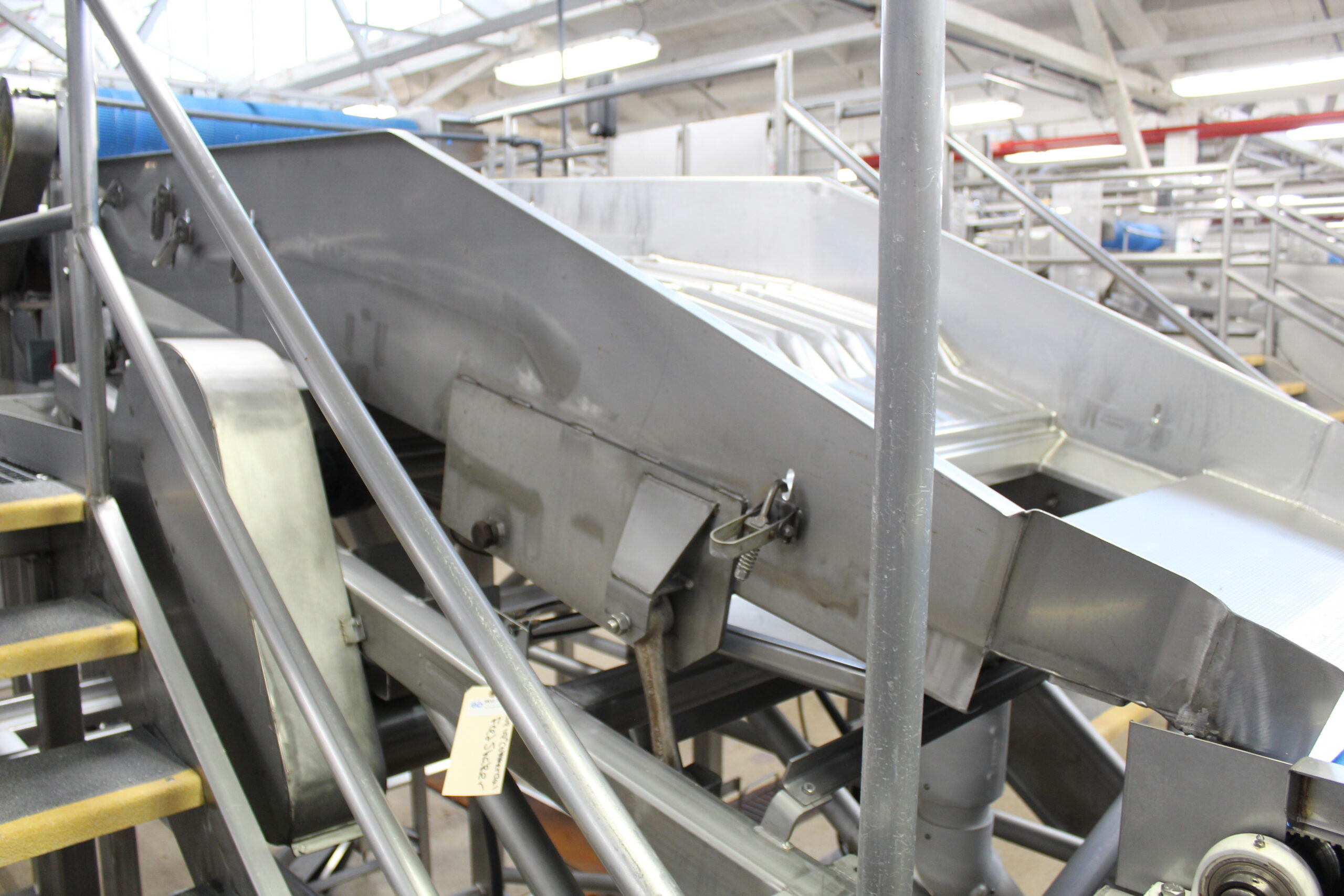 Shaker was last orienting halved pear slices face up, feeding into a sorter. Line 2 of 4