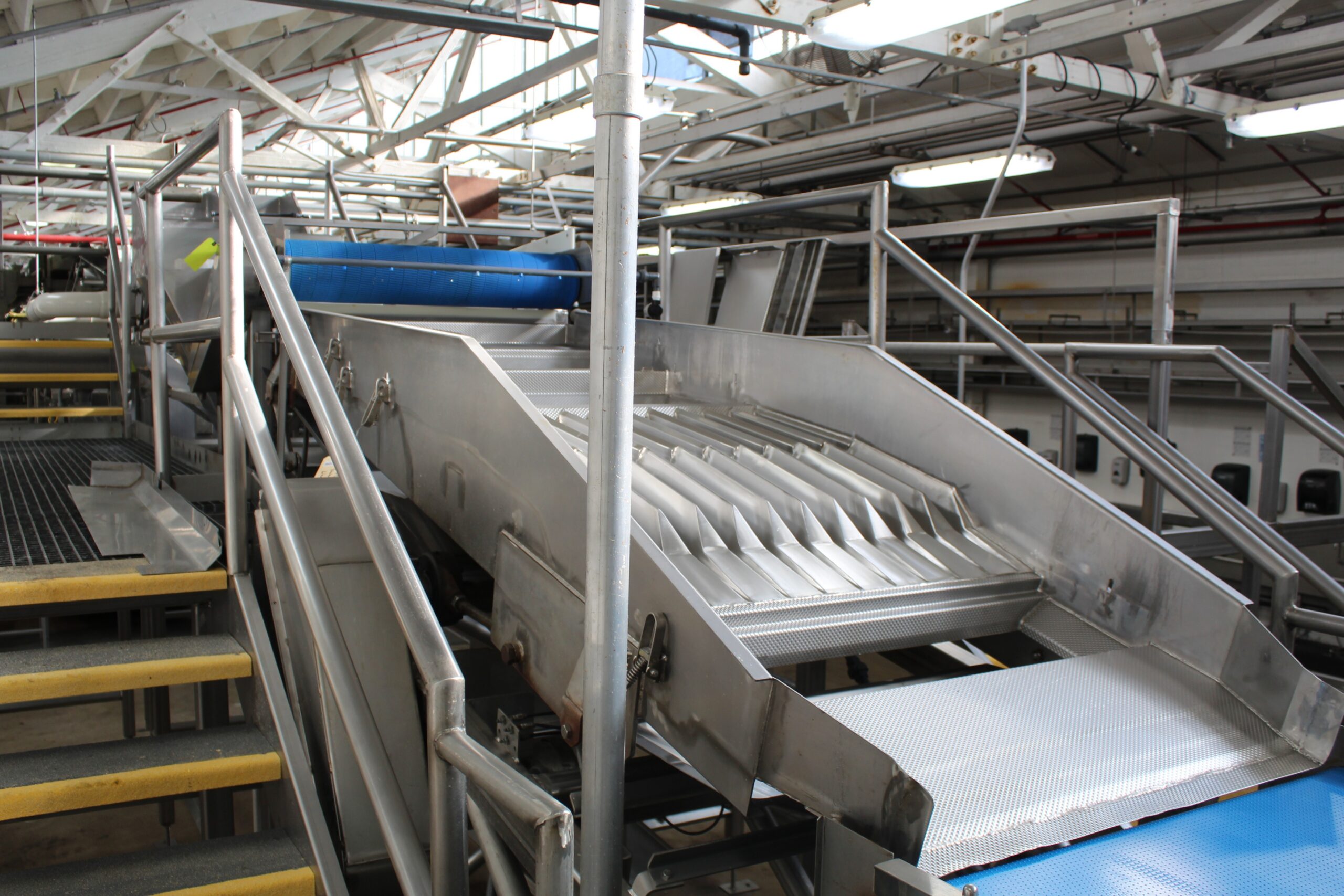 Shaker was last orienting halved pear slices face up, feeding into a sorter. Line 4 of 4