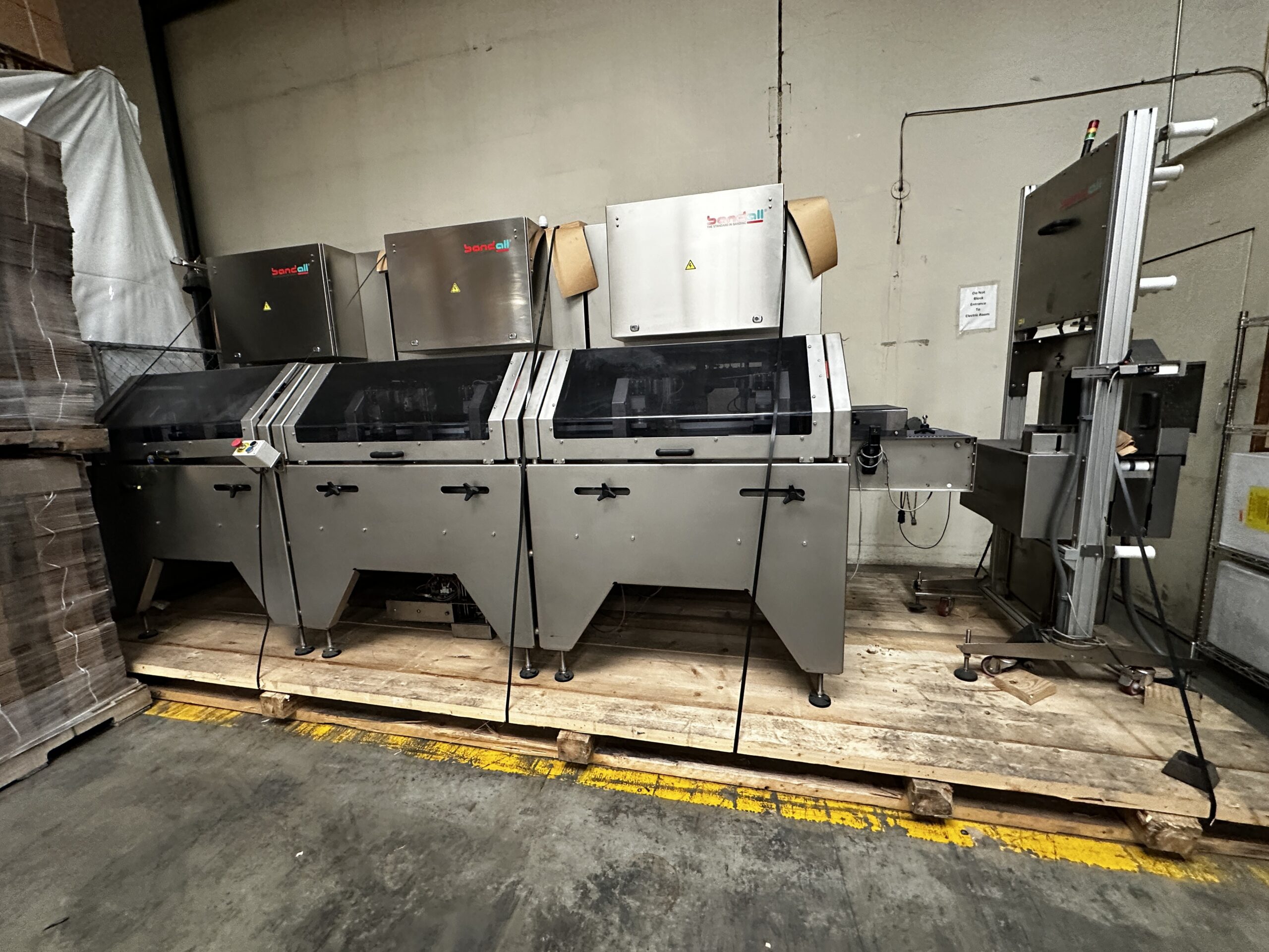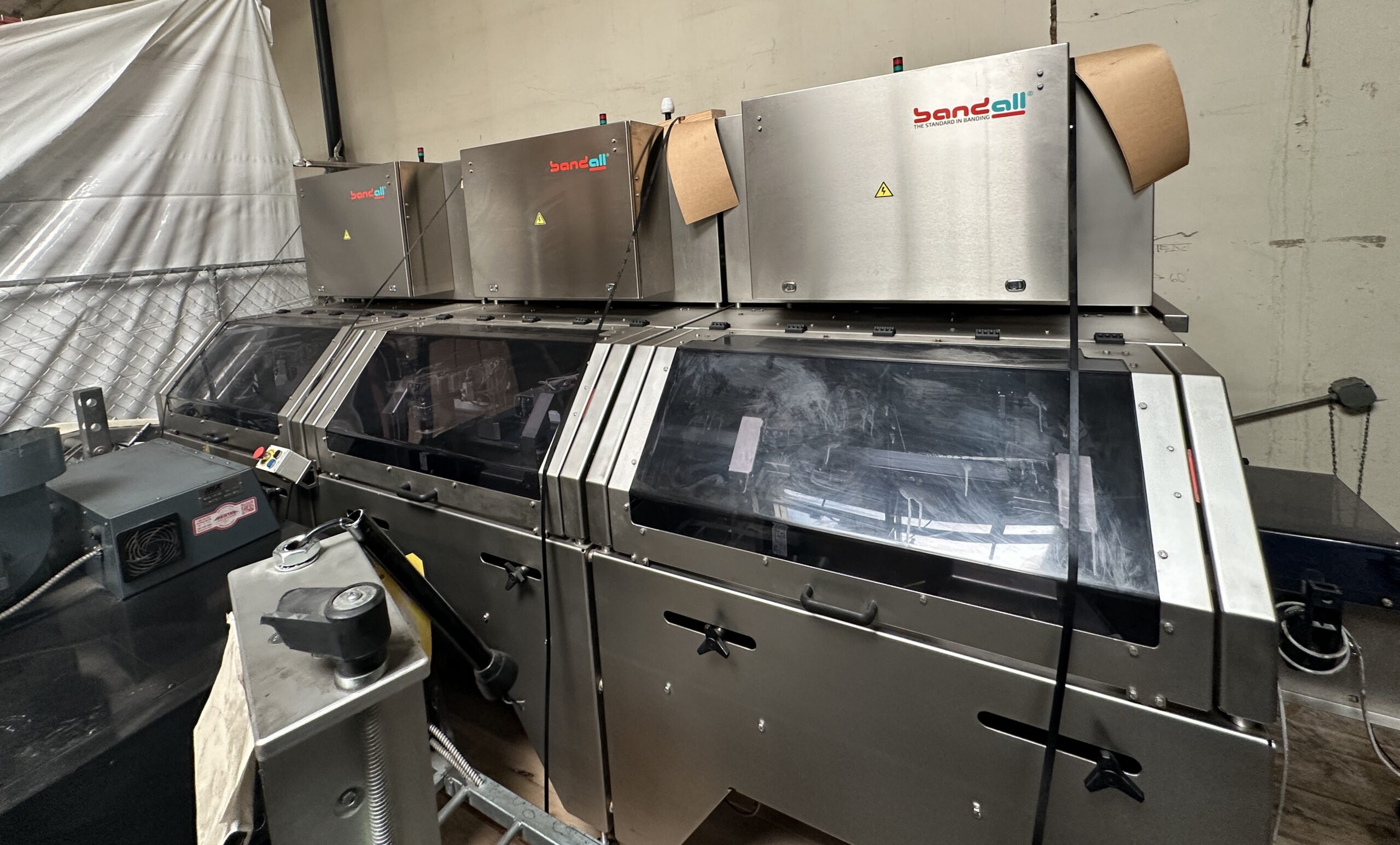 Fully automatic Bandall banding/seal machine with 3 stations. The machine was purchased to run plant based food products. It can be purchased separately or combined with our Bandall banding/sealing machine # 321512.