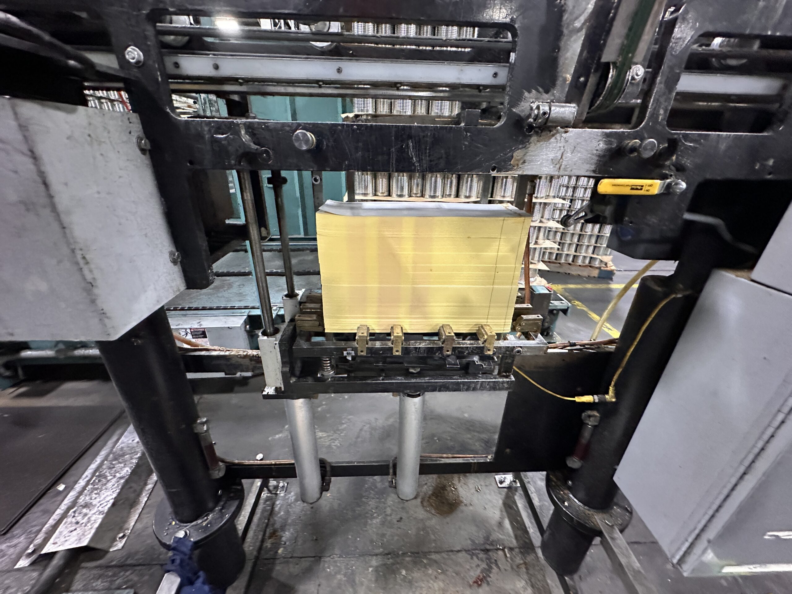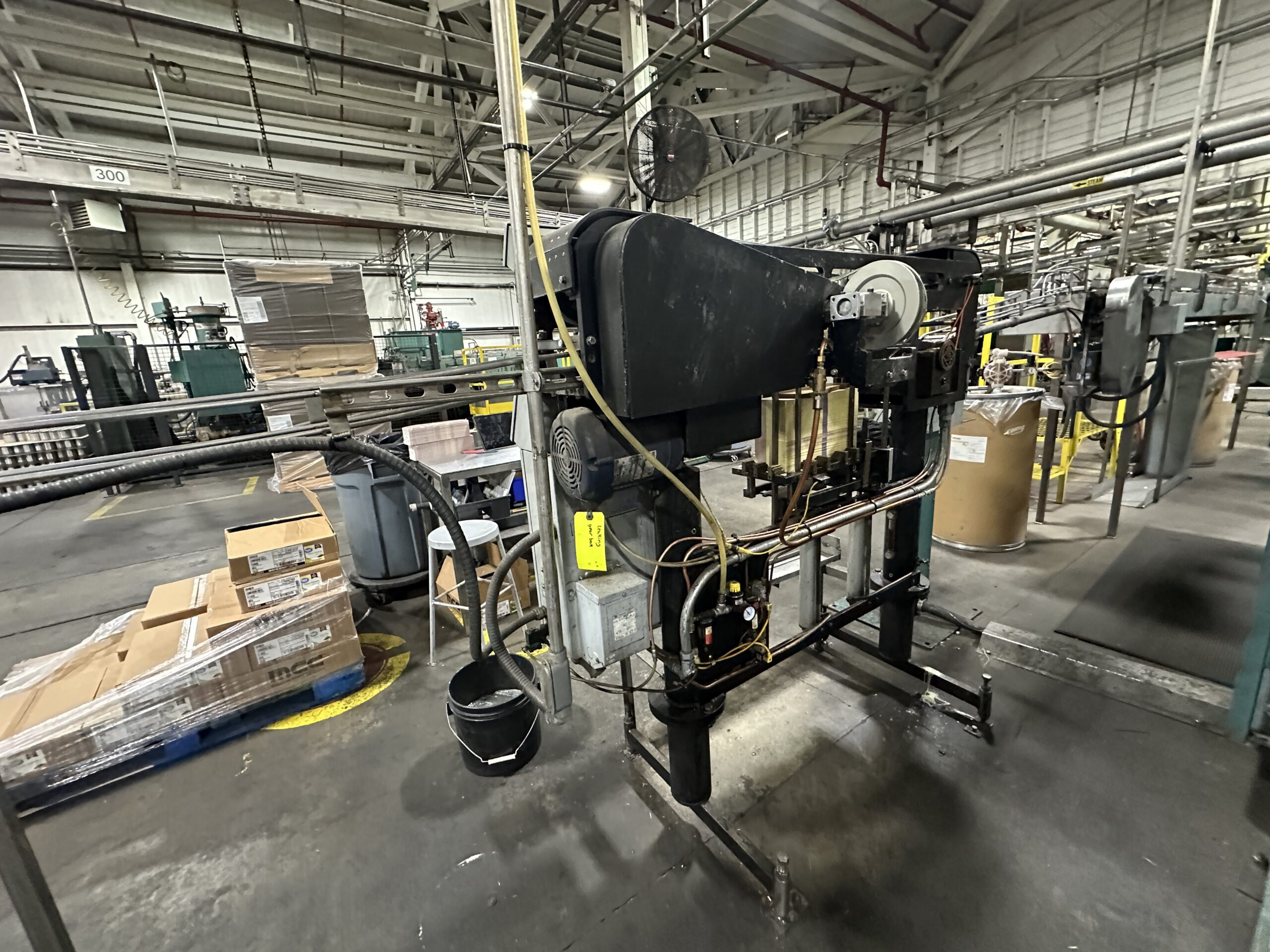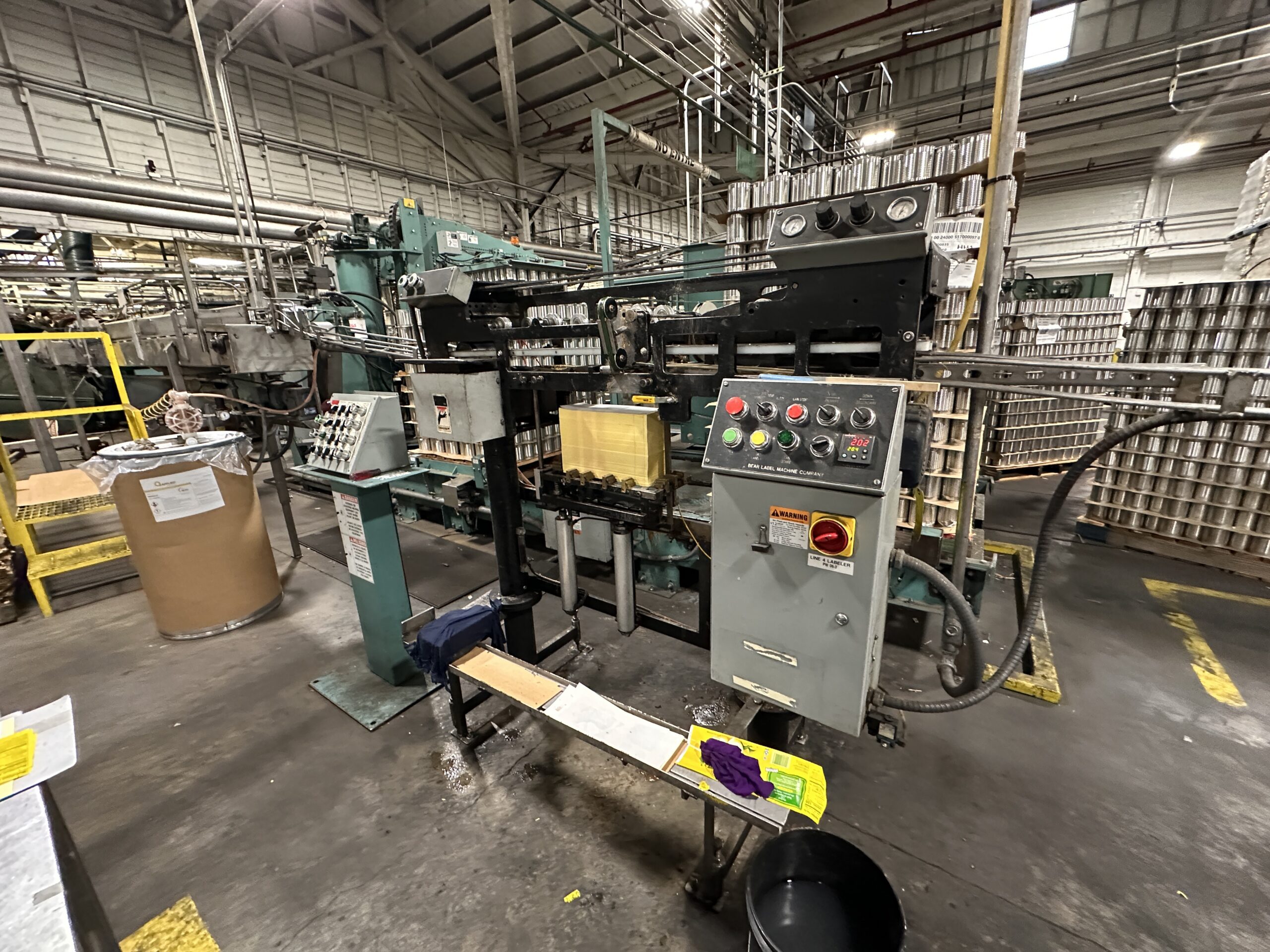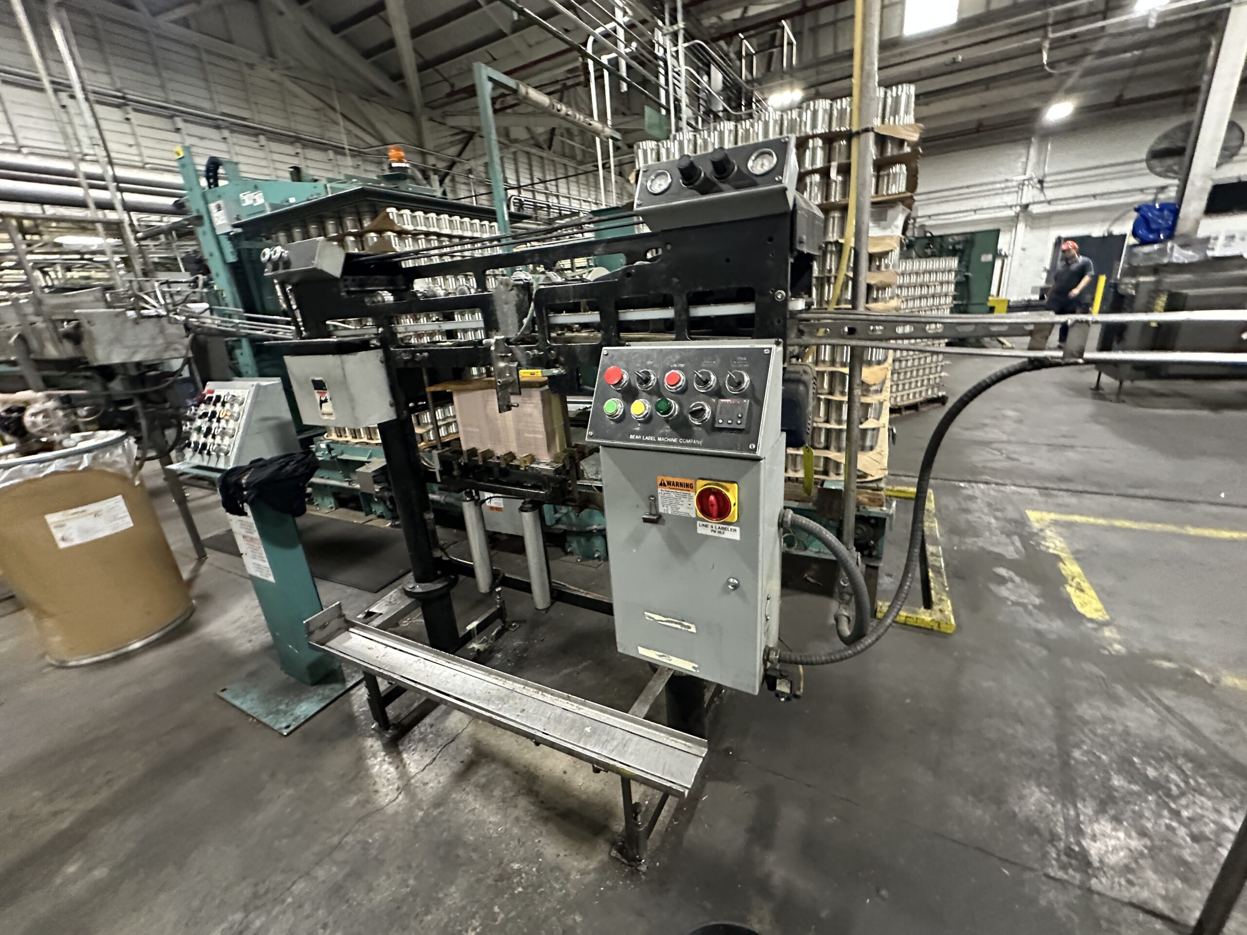 Used Bear roll-through can labeler set to run 401 diameter cans.