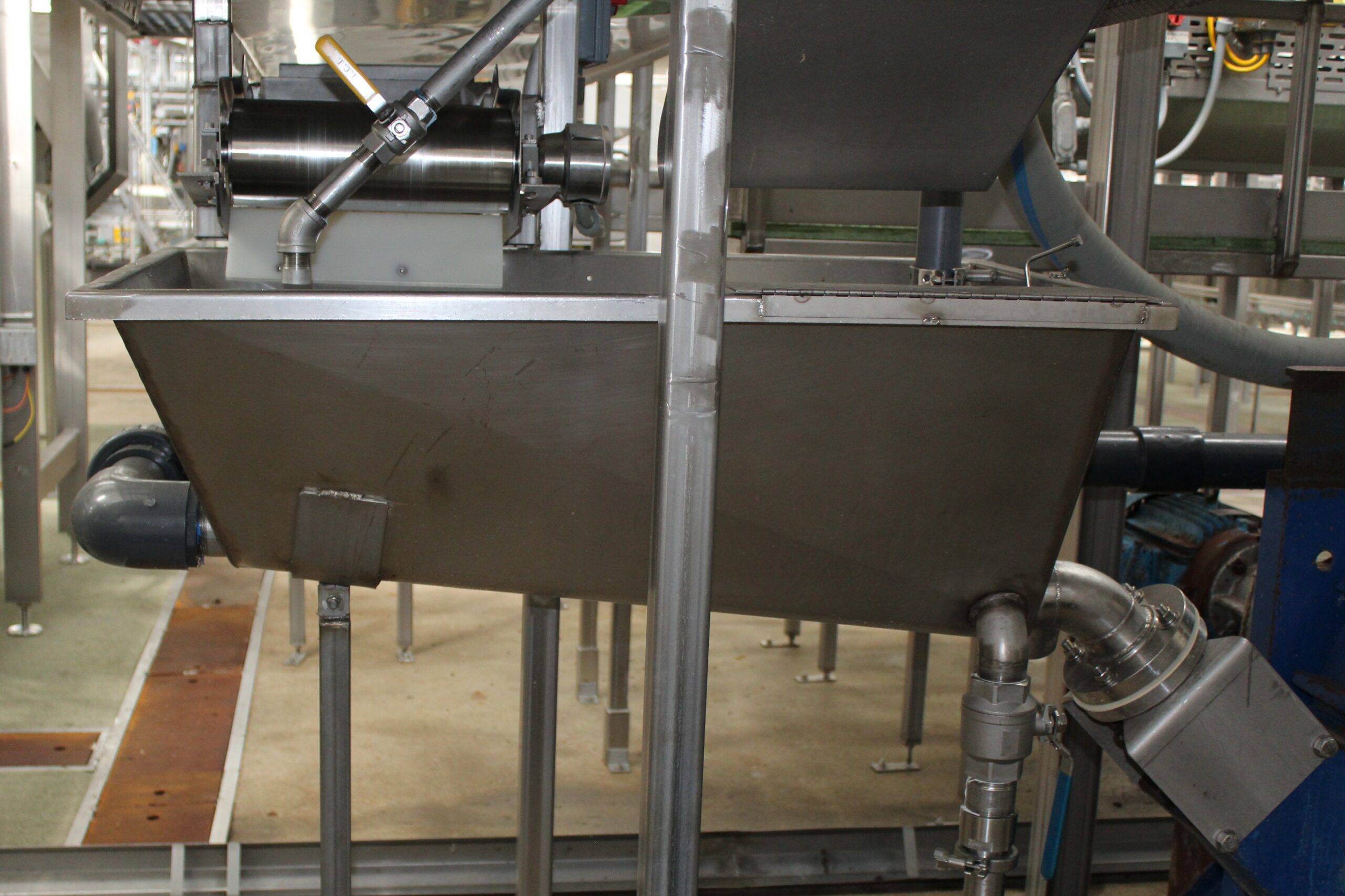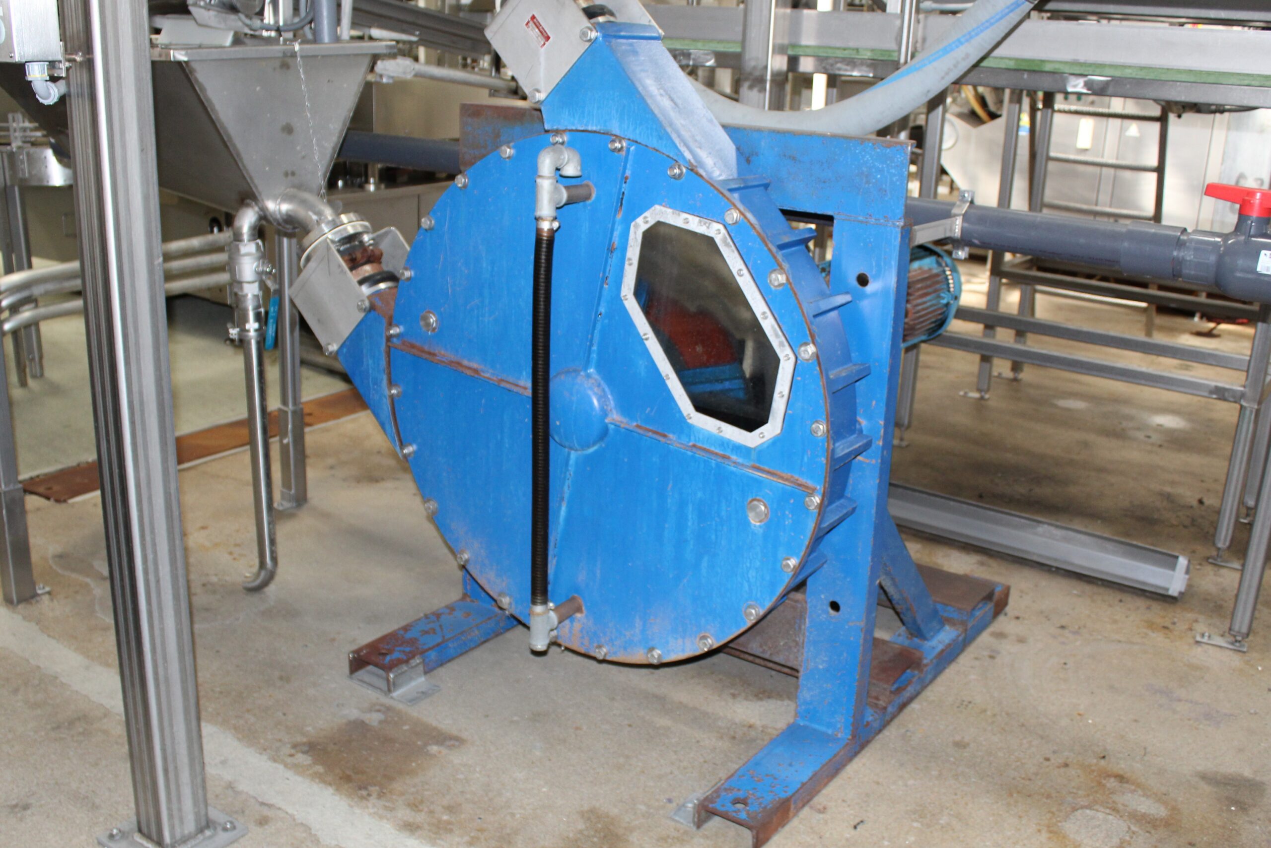 Positive displacement pump designed to move product gently. Comes with receiving hopper.