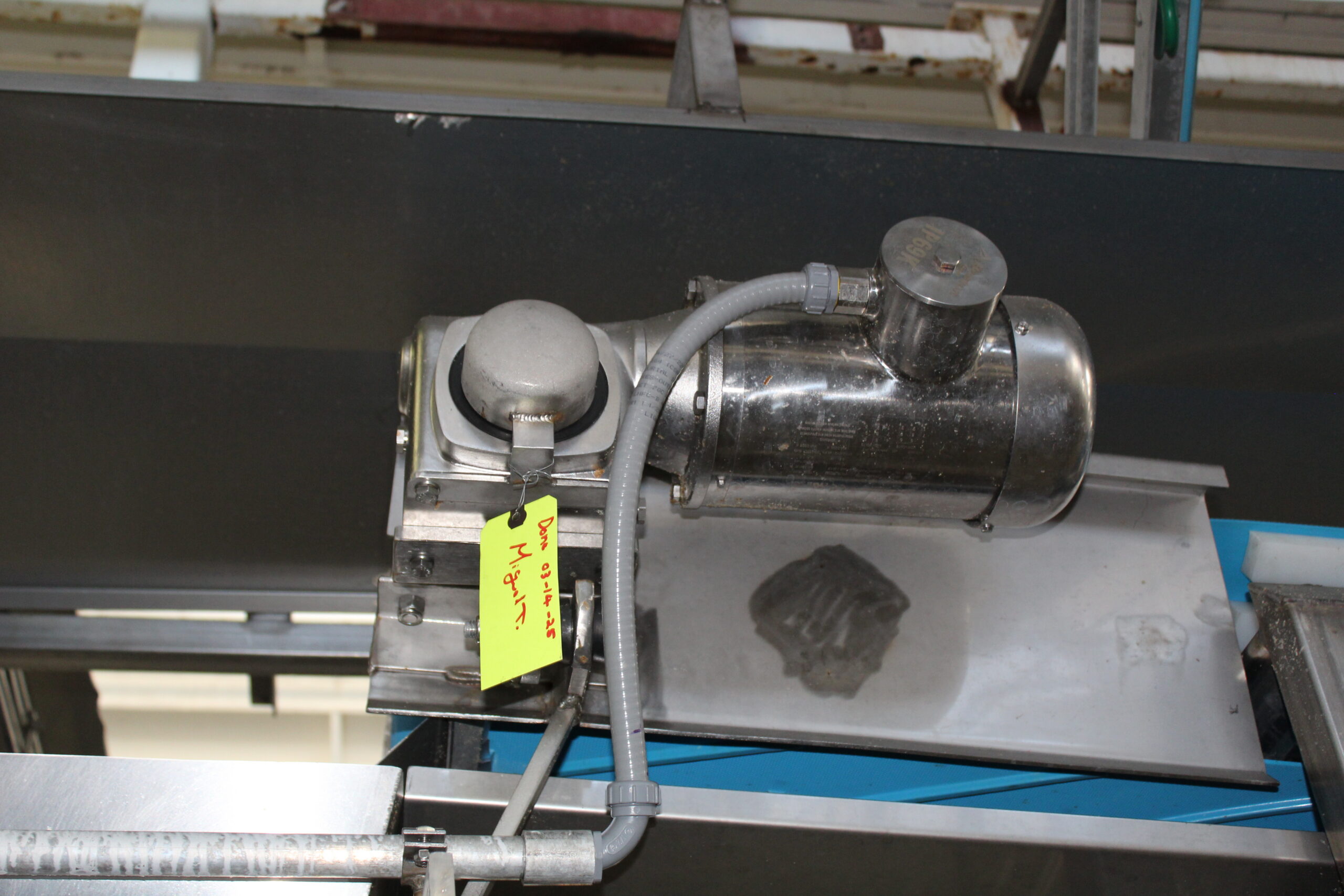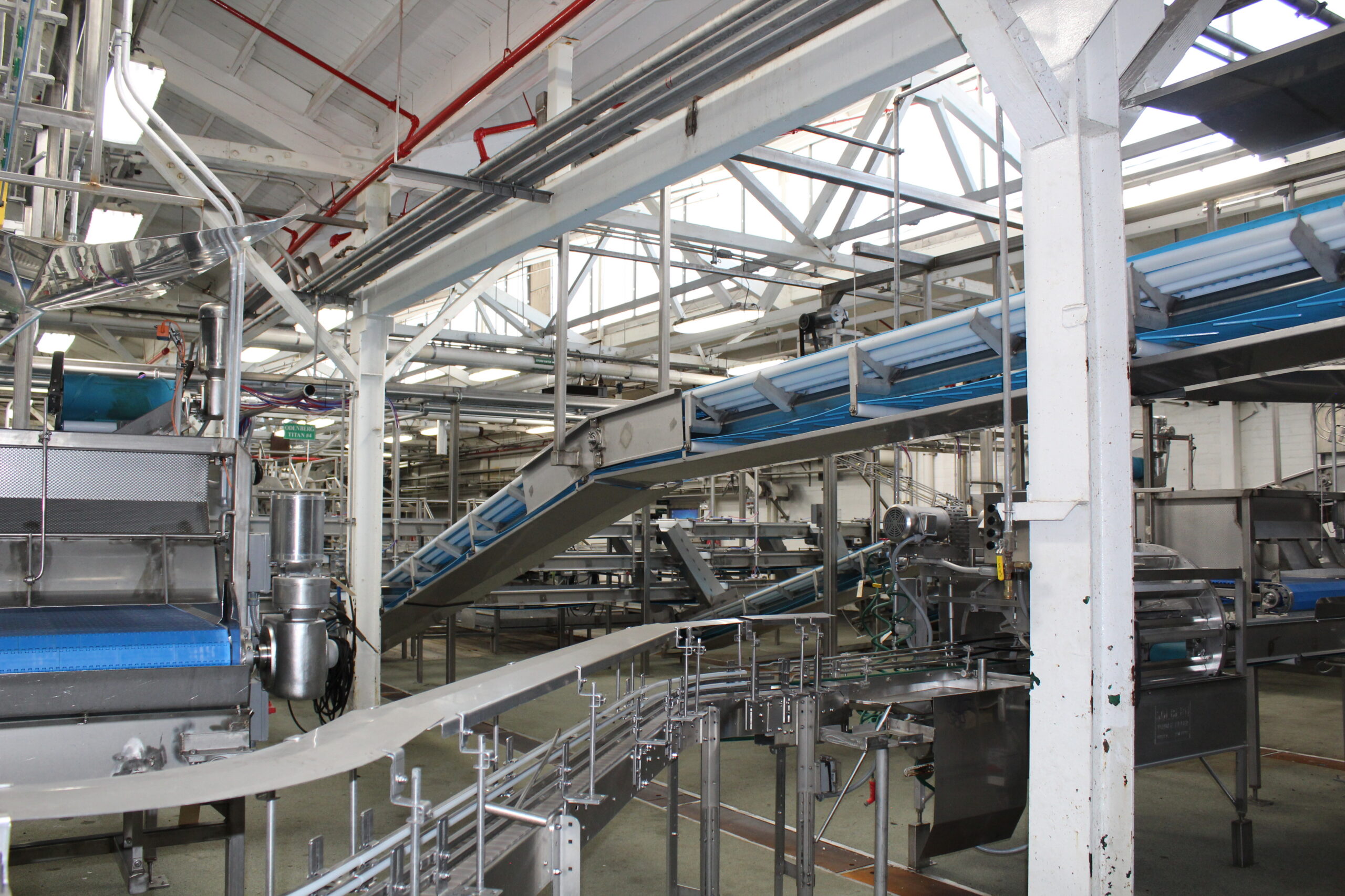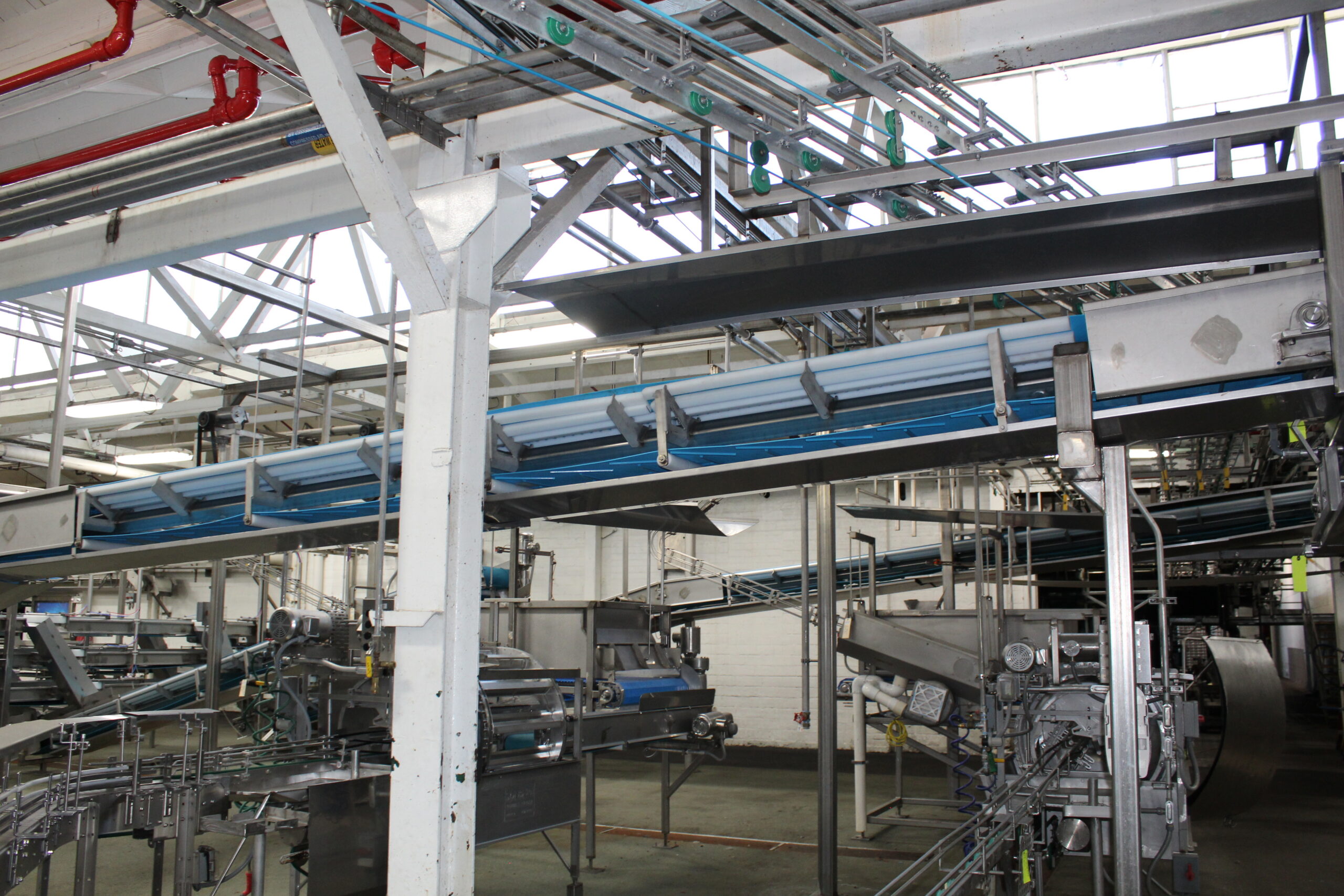 Single long conveyor belt that feeds into filler hopper. Out of all conveyors, this is the longest.