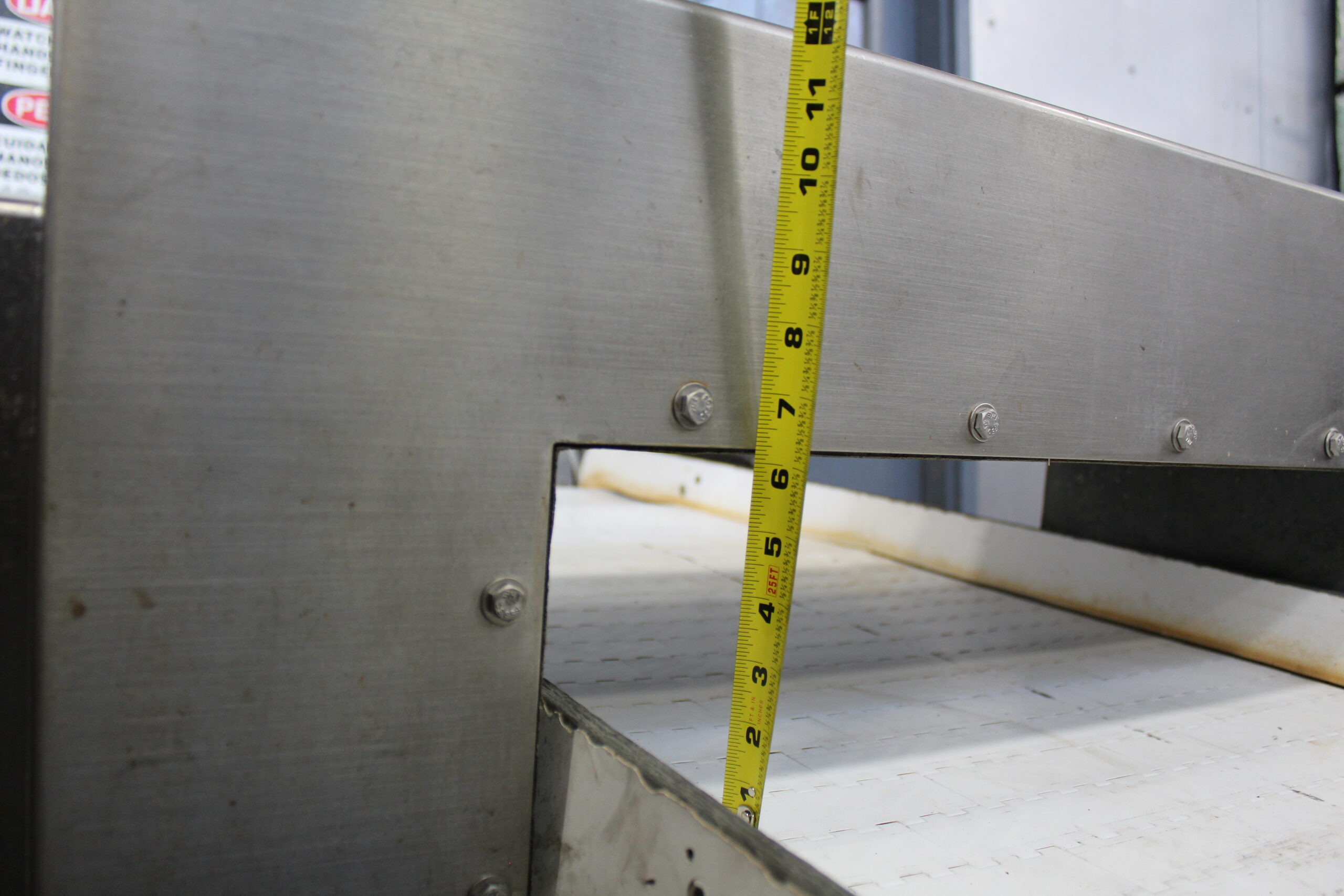 Apeture is 24″ across and about 6″ from belt to top. Last used for waste product.