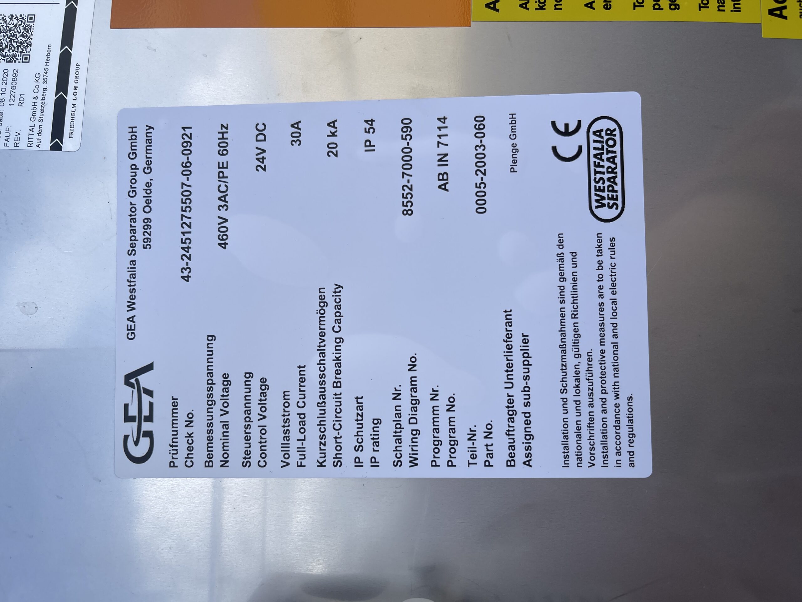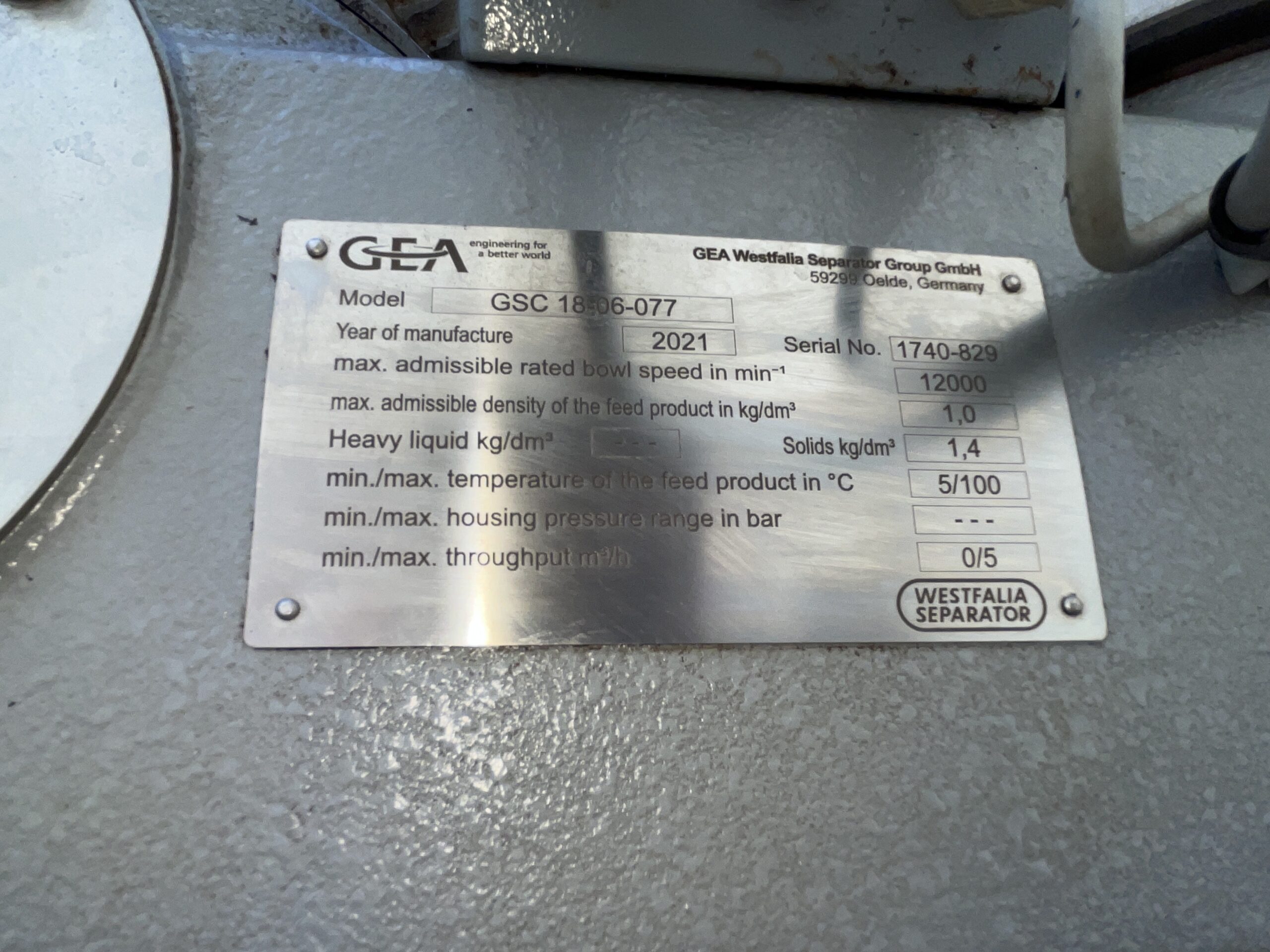 Used Westfalia Separator, GEA Centrifuge GSC 18 06-077