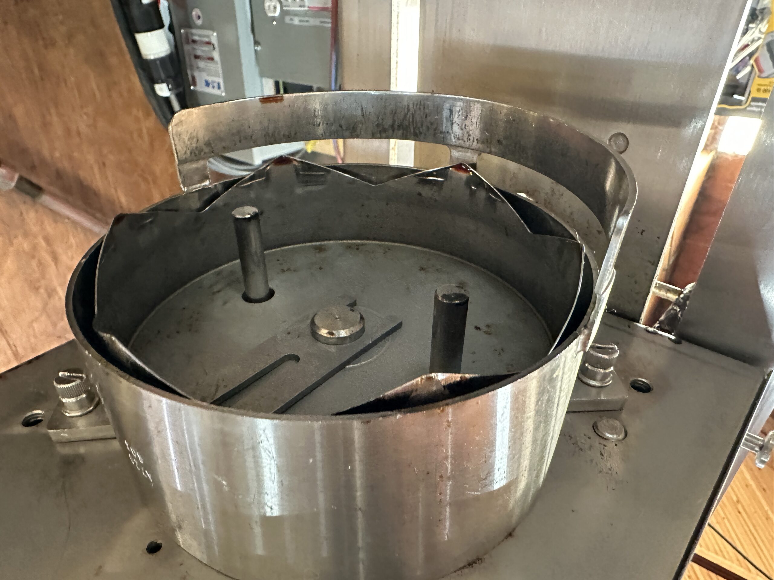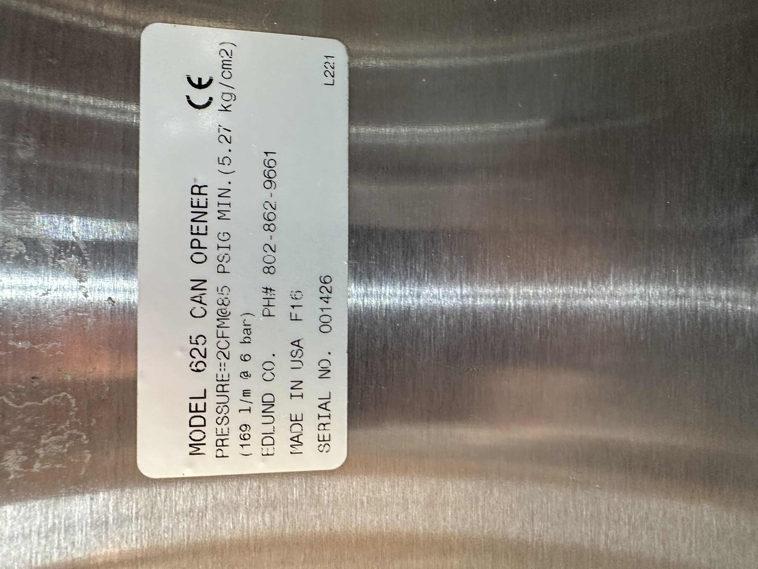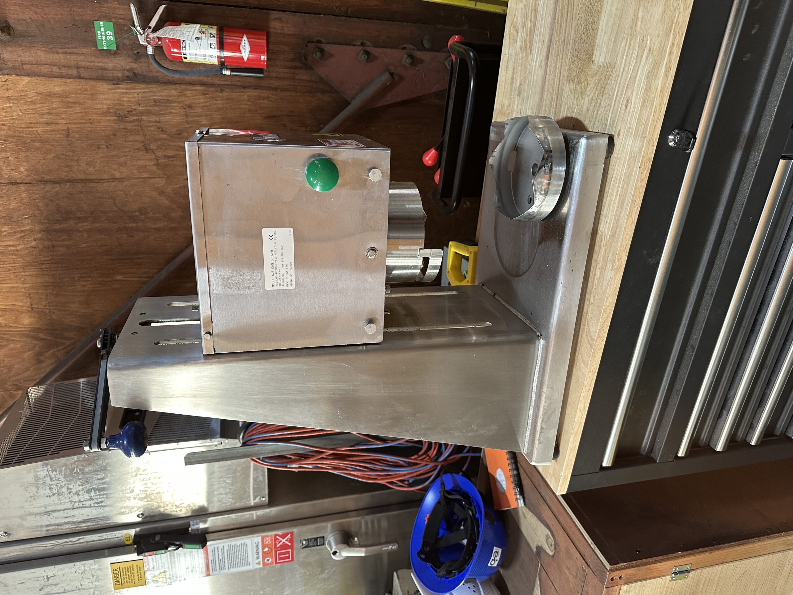 Heavy duty air powered crown punch. This was last used to open number 10 sized cans of tomato.