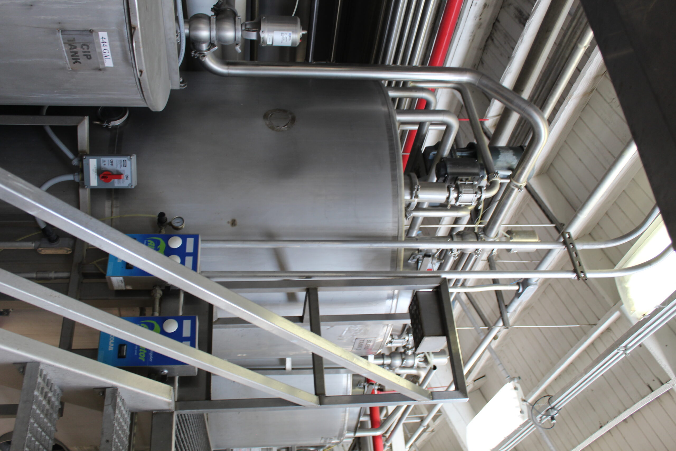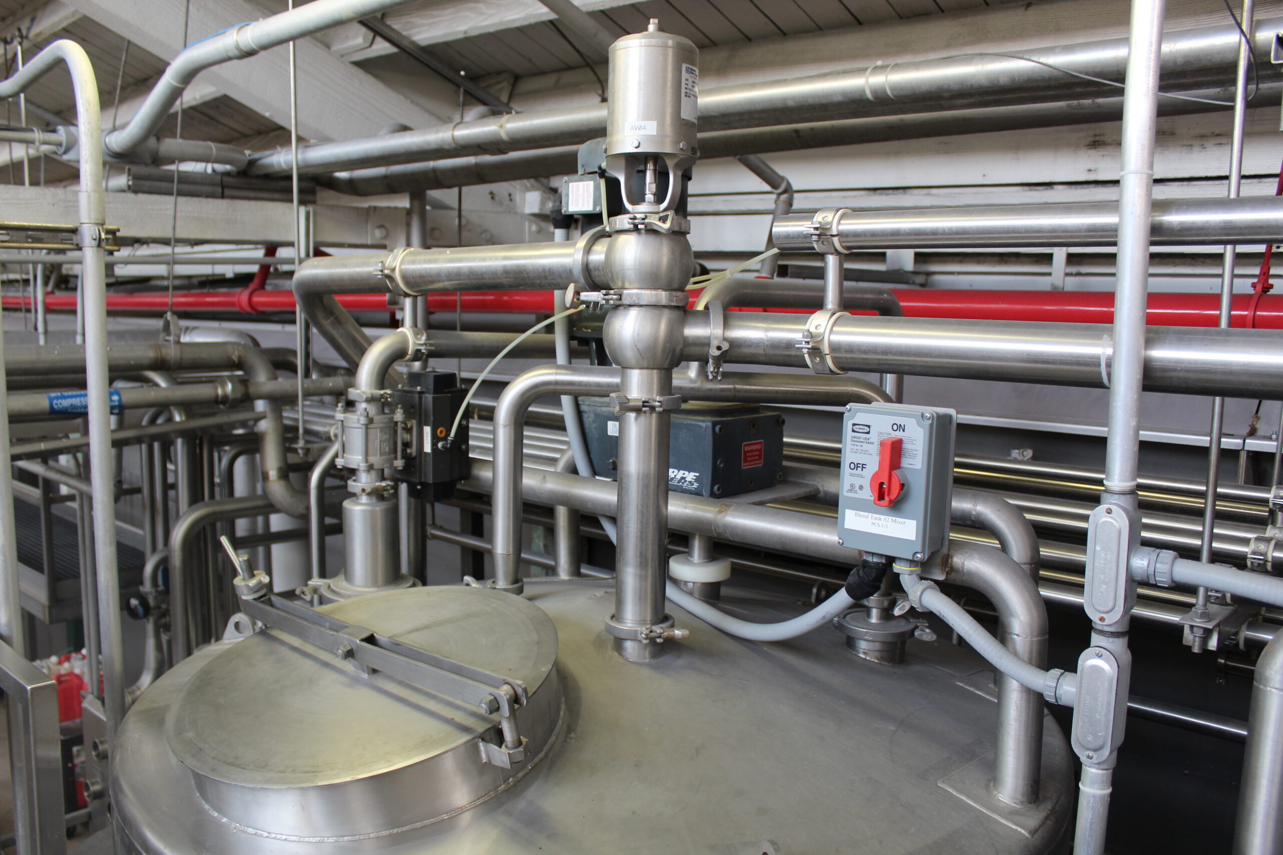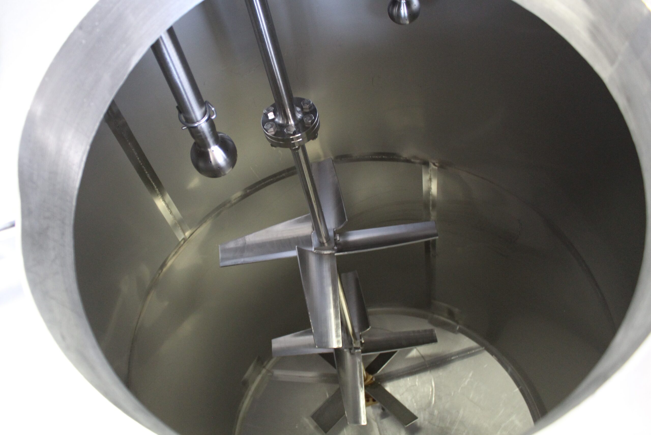 Blend tank with mixing blades and two spray balls. 5 HP Motor